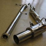 Brand new Beluga Racing stainless steel performance axle back exhaust system with dual 102mm 4″ rolled tips and 2.5″ diameter piping for aggressive deep tone without drone in cabin.